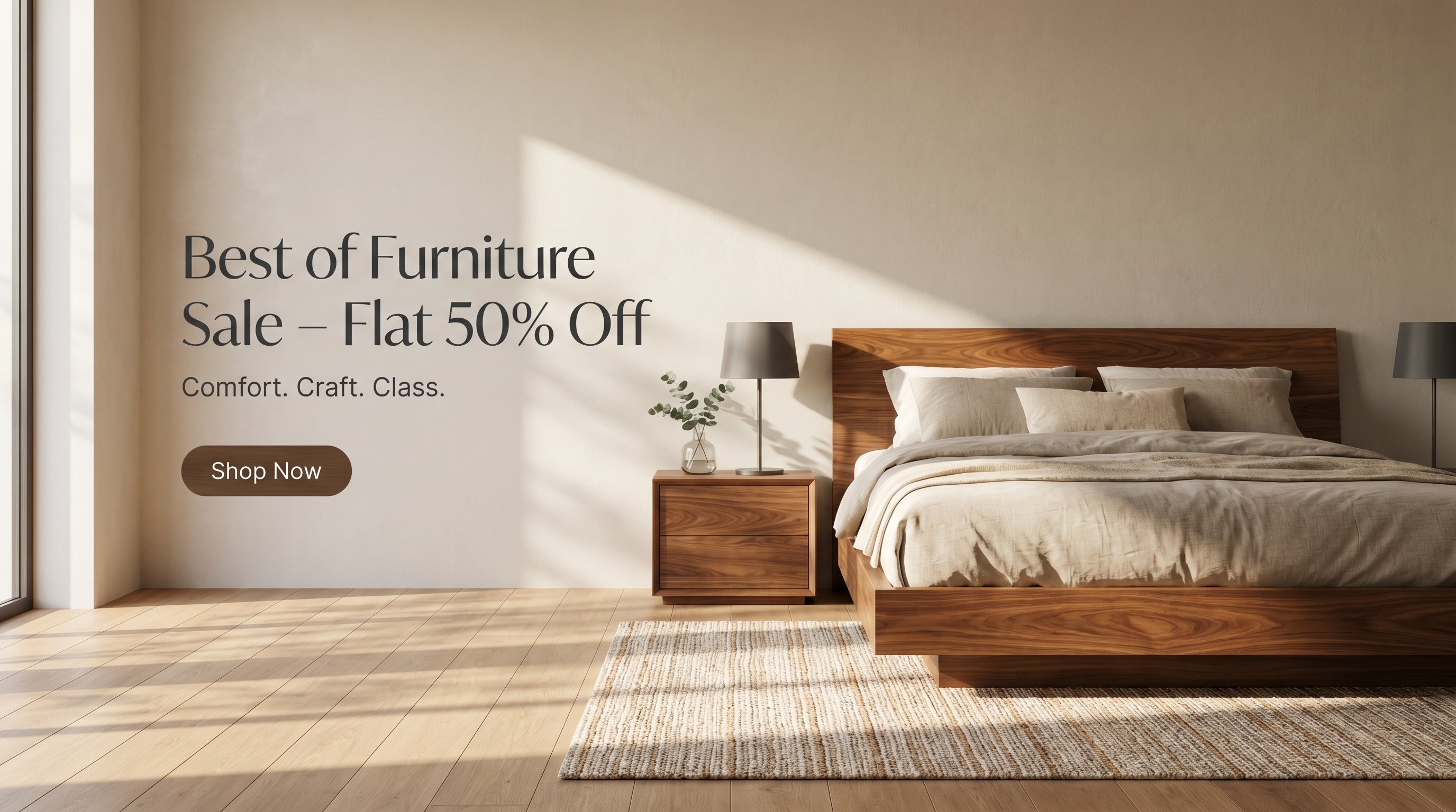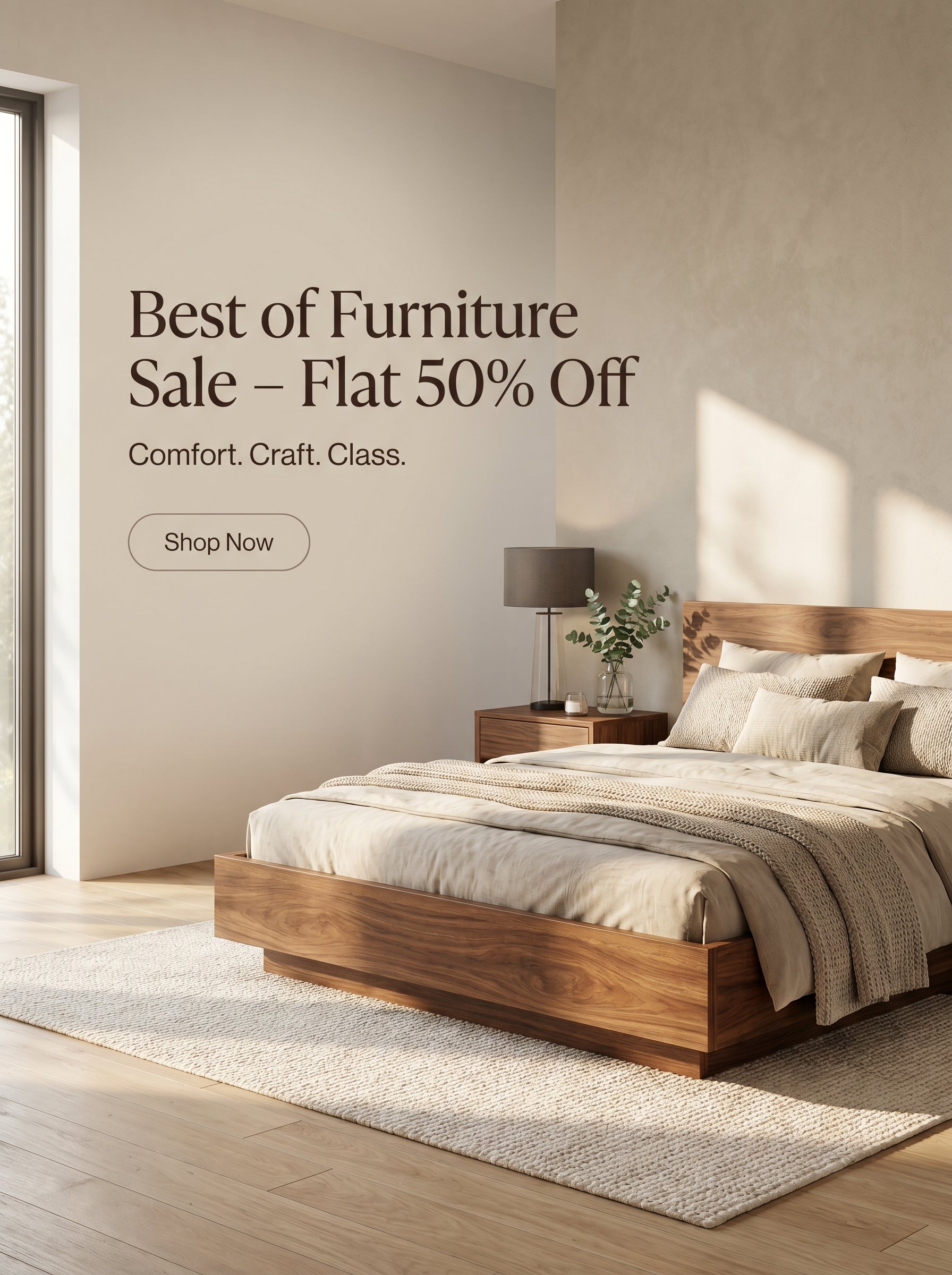 Luxurious Solid Wood Queen Size Bed in Brown Finish